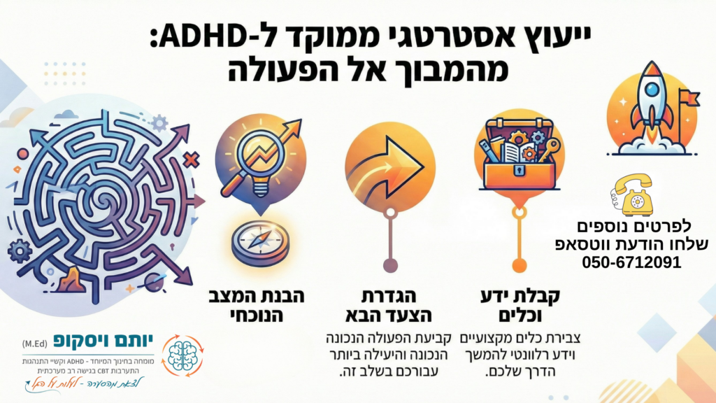 השנייה: אני מסייע לאנשים לשפר את איכות החיים ואת ההתנהלות עם הפרעת הקשב, באמצעות מודלים וכלים שפיתחתי, המבוססים על מחקר ועל פרקטיות מיטביות.